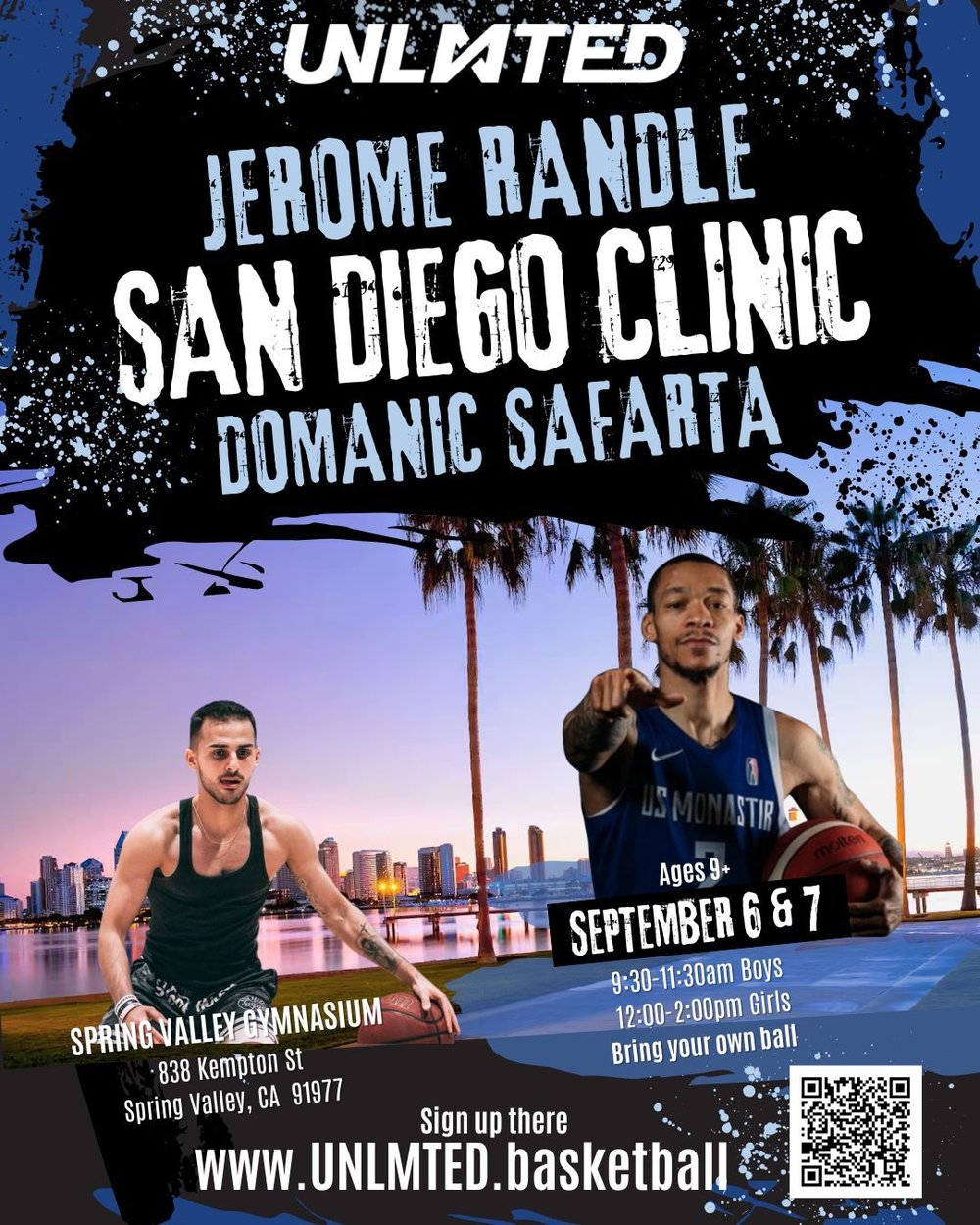 Join former professional basketball player Jerome Randle and Domanic Safarta for an unforgettable training experience at San Diego's POP UP CLINIC this September 6&7, 2025. Elevate your game with personalized coaching and expert drills. Places are limited.